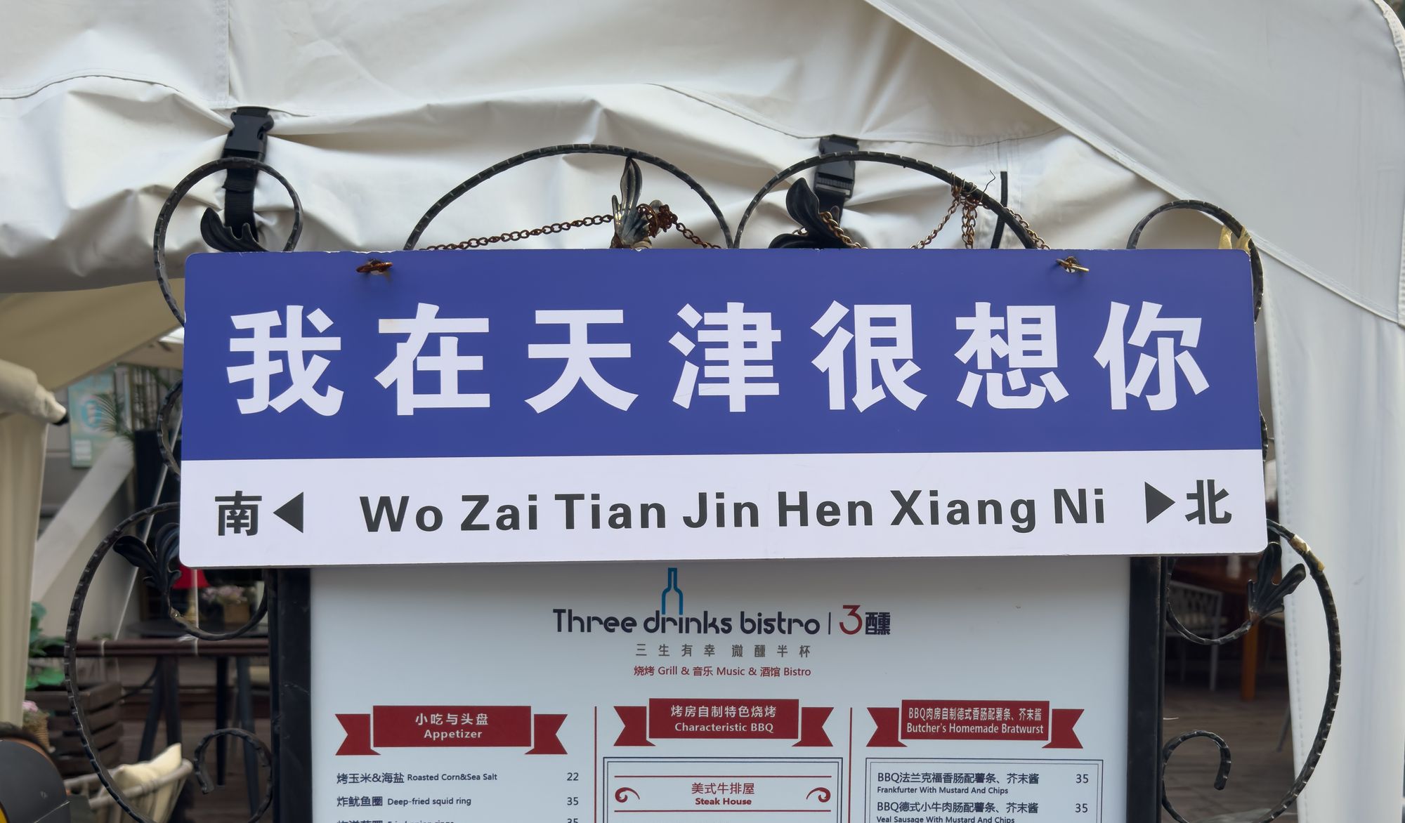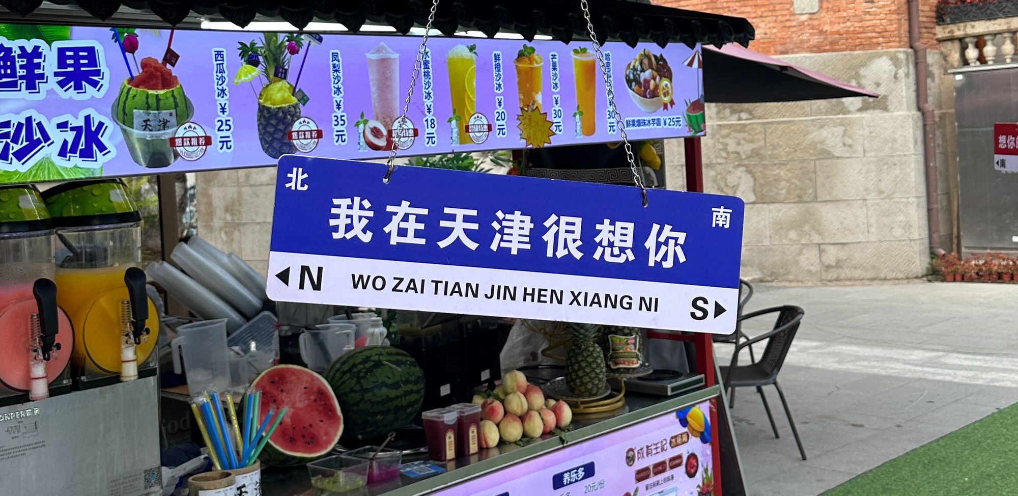 Tianjin has a romantic feeling all around, people are more affectionate and they have 我在天津很想你 and funny variants everywhere.