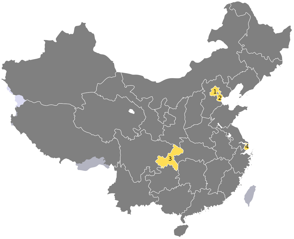 虽然中国有很多城市。4个城市是直辖市。北京,上海,重庆,天津。